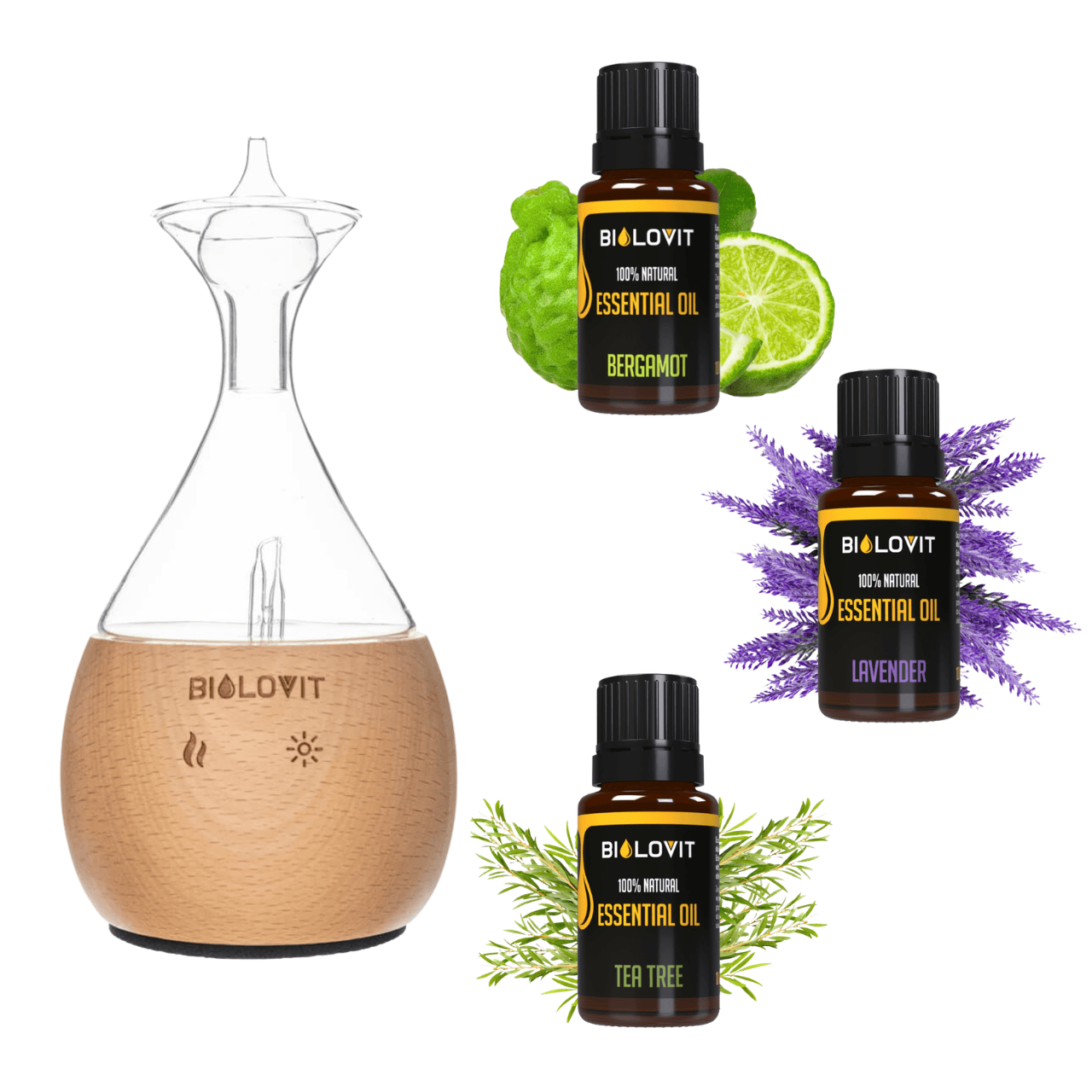 A készlet tartalmaz egy porlasztót és 3 illóolajat - bergamott , levendula és teafa . A Bilovit illóolaj-porlasztó egy csúcstechnológiájú eszköz, amely teljes mértékben kihasználja az aromaterápia előnyeit – elősegíti az egészséget és a jó közérzetet. Egyedülálló működési mechanizmusának köszönhetően, kiváló alternatívája a hagyományos illatterápiás módszereknek, miközben megőrzi azok összes előnyét. A porlasztó nemcsak funkcionális, hanem egy gyönyörű otthoni berendezési tárgy (és dekoráció is).