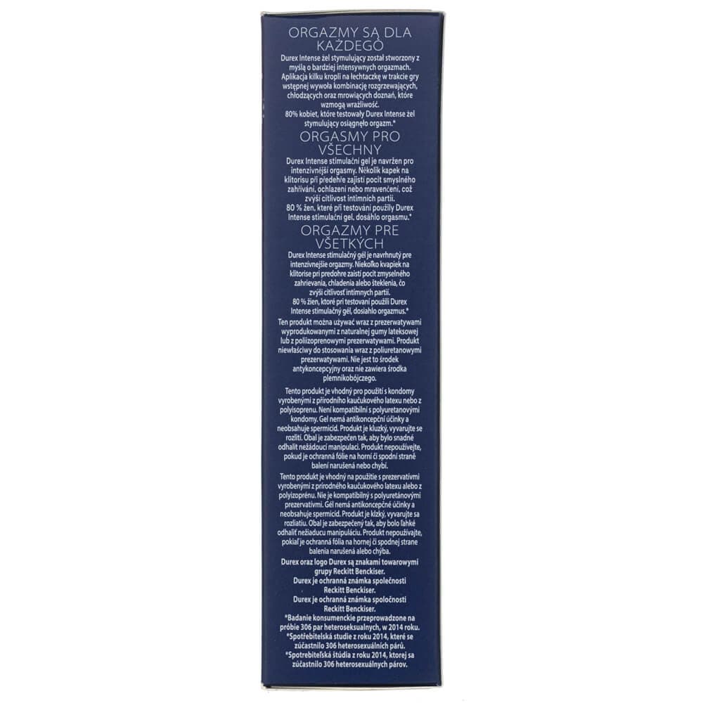 Enjoy intimate moments with your partner even more and give yourself intensified sensations with Durex Intense gel. Durex's newest product is a gentle, water-based clitoral stimulating gel that not only makes it easier to achieve orgasm, but also intensifies its power.