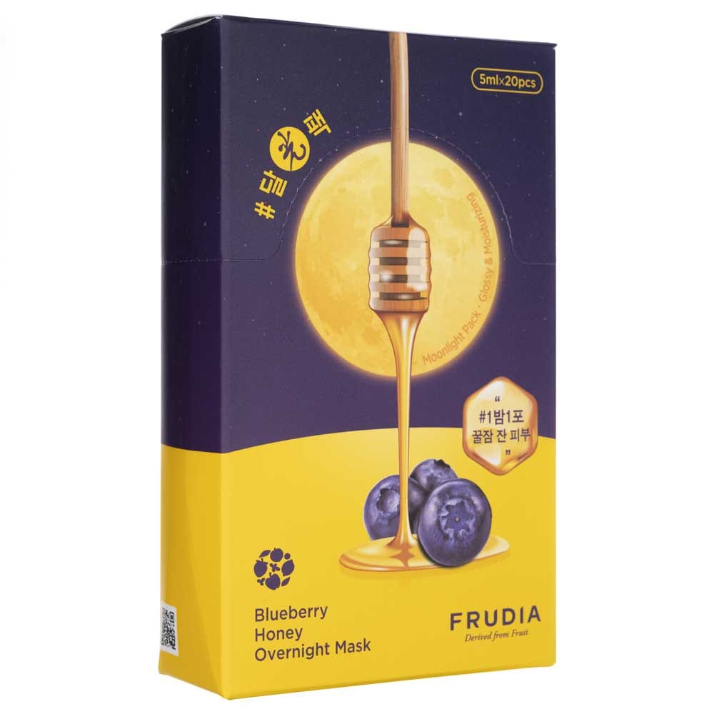 Frudia Blueberry Honey Overnight Mask is a nourishing, overnight mask based on hydrating blueberry extract that softens, smooths and soothes your skin. In addition, this product is enriched with nourishing shea butter and strongly moisturising betaine to provide comprehensive care. The set contains 20 masks.