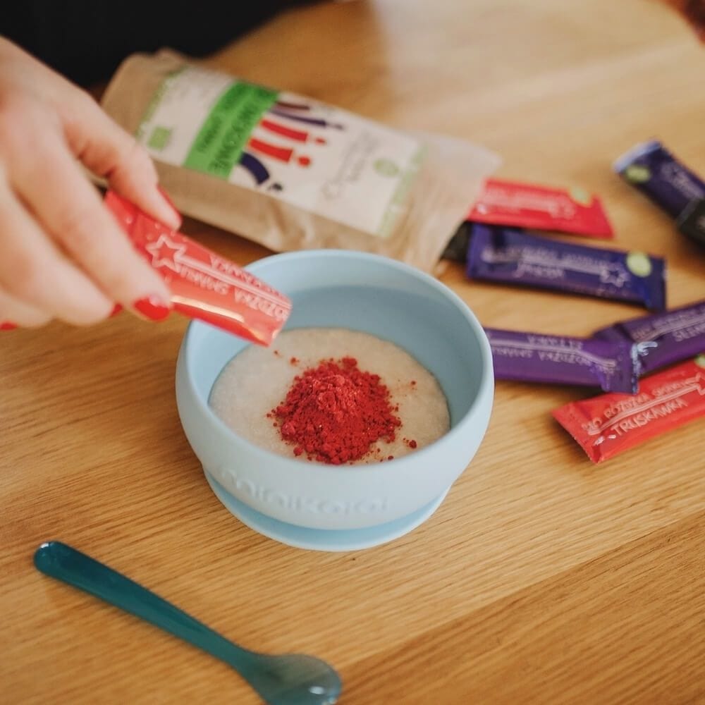 Bio Tropical Wands of Flavor is a set of 5 different, colorful fruits in freeze-dried powder form, enclosed in colorful one-pack sachets. The set contains two 2-gram packs each of strawberry, raspberry, blueberry, plum and black currant - a total of 10 Wands of Flavor! It's a 100% natural addition to porridge and other meals, enriching them with vitamins, minerals and exotic flavor and aroma.