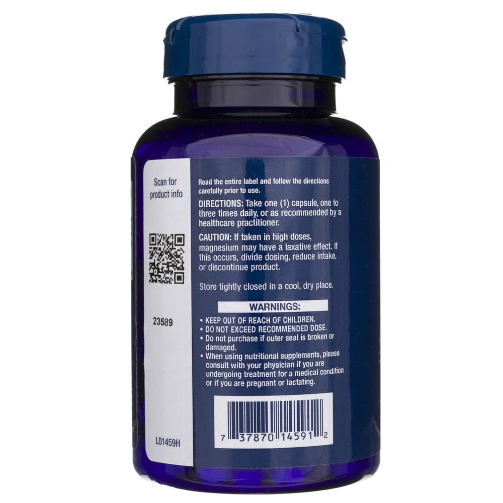 Magnesium Caps provides one of the highest concentrations of elemental magnesium per capsule available on the market. Magnesium is one of your body’s most important minerals. It is required as a cofactor in hundreds of enzymatic processes within cells. It helps maintain normal muscle and nerve function, keeps heart rhythm steady, supports a healthy immune system.