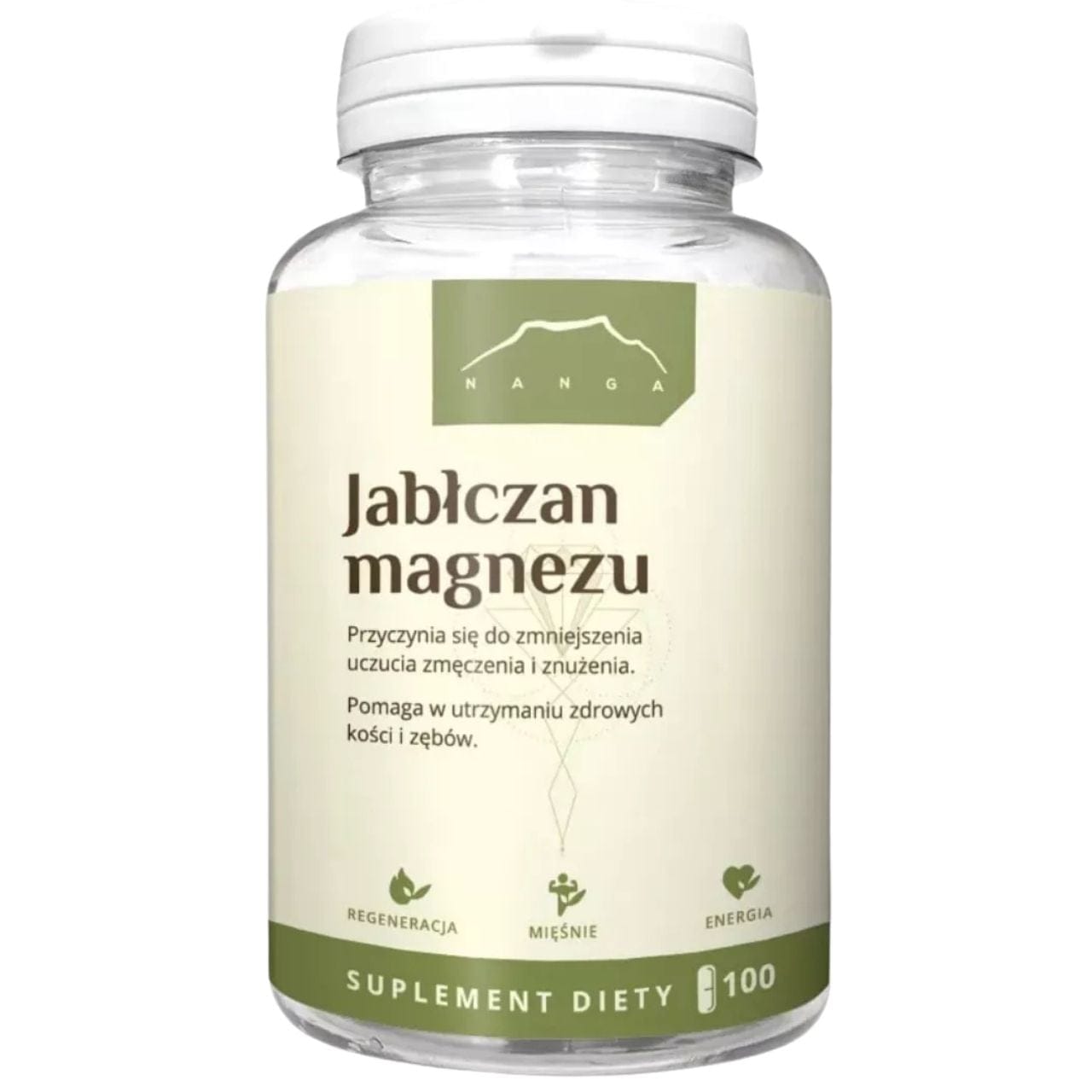 Nanga Magnesium Malate is a dietary supplement in vegan capsules containing magnesium in the form of malate – one of the more easily absorbed forms of this mineral. The daily dose (3 capsules) provides 245.7 mg of magnesium (65.5% RDA). Magnesium contributes to reducing fatigue, supports the proper functioning of the nervous system and muscles, and helps maintain healthy bones. Cellulose capsules suitable for vegans. Does not contain: gluten, lactose, gelatin, colourings, preservatives.