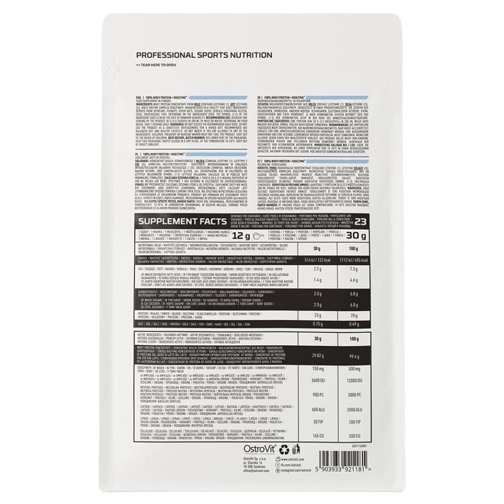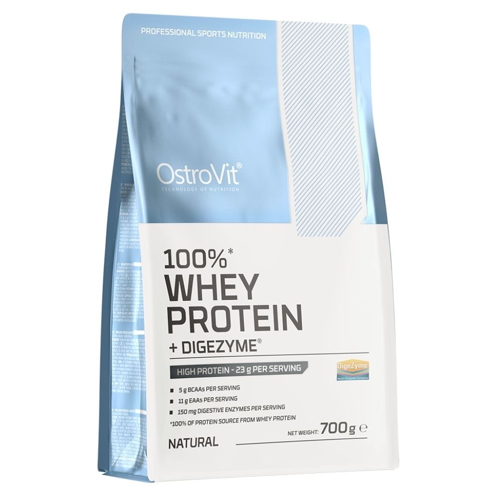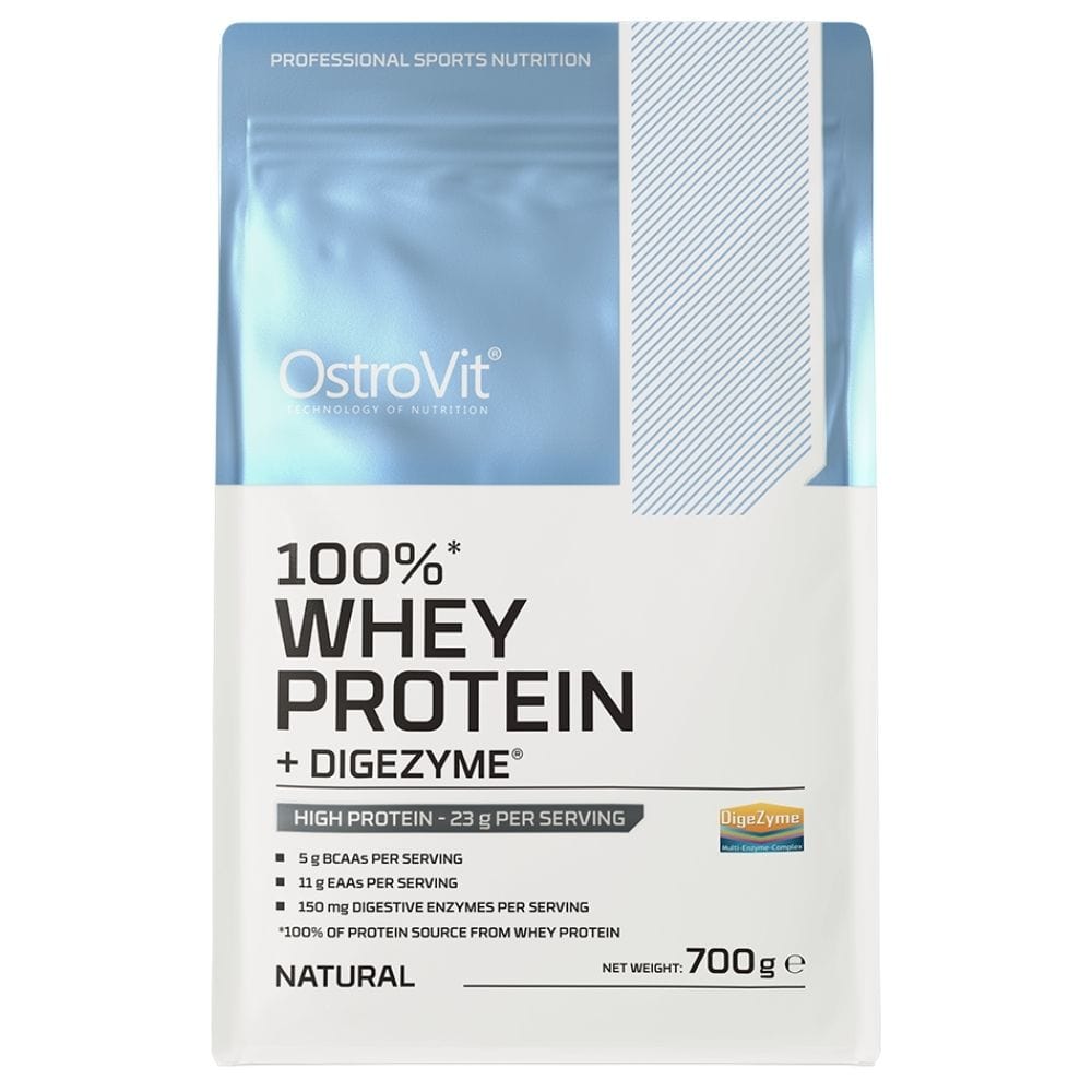 OstroVit 100% Whey Protein + Digezyme® is a liquid dietary supplement. Source of whey protein concentrate with the addition of the multienzymatic complex DigeZyme®. Rich in BCAAs and EAAs. Without unnecessary additives, with natural flavour.