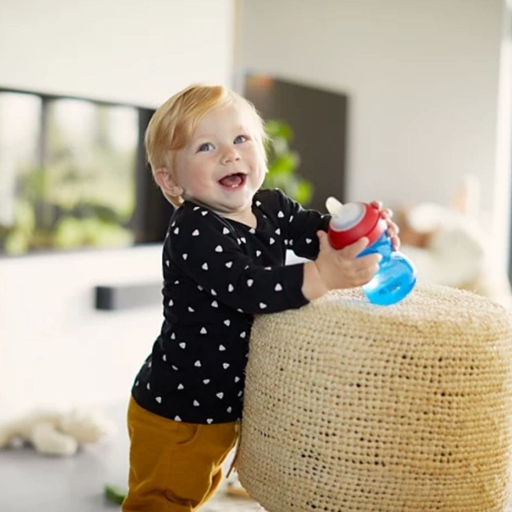 The Philips Avent My Grippy cup with spout has been designed for active toddlers who are just starting to drink independently. Its unique valve guarantees leak-proof performance even during intense play – liquid only flows when your child is actually drinking from the cup. This solution has been appreciated by 91% of mums*, who confirmed its effectiveness in preventing spills.
