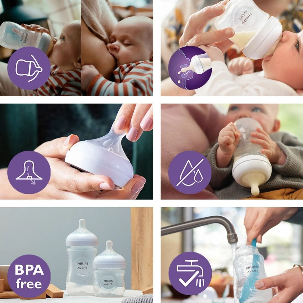 The innovative Responsive Natural bottle with a responsive teat is designed to mimic the mother's breast. The unique J-slit teat ensures that milk flows only during active sucking, just like when breastfeeding. The baby sucks, swallows and breathes at their own pace, and when they take a break, the milk stops flowing. Equipped with an anti-colic valve to reduce the risk of colic and discomfort. Made from bisphenol A-free materials, it combines perfectly with other products in the Avent series.