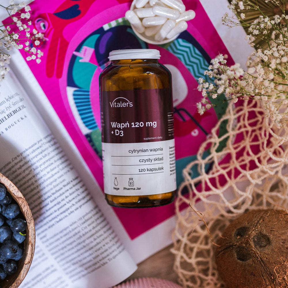 Vitaler's Calcium 120 mg + D3 dietary supplement combines an organic form of calcium and vitamin D3, both of which significantly increase the beneficial effects on bone structure. The calcium citrate used in the formula is a form that does not increase the risk of kidney stones and is much better absorbed than calcium carbonate. Calcium in this form can be used even by people who take medications that reduce gastric juice secretion. The dietary supplement, thanks to its vitamin D3 content, is able to reduce the risk of fractures, loss of bone mass, and at the same time can have a beneficial effect on the overall well-being of postmenopausal women.