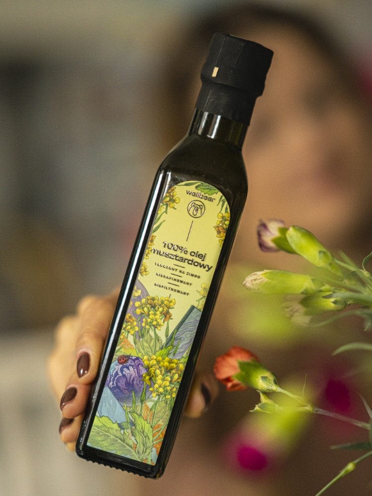 Due to its high content of unsaturated acids, cold-pressed mustard oil has an extremely beneficial effect on the human brain and cardiovascular system. It is able to have a positive effect on lowering the level of bad cholesterol and raising the level of good cholesterol at the same time. The oil also improves blood flow, which is why it is recommended for people suffering from hypertension. The product has a warming effect and stimulates circulation, so it is helpful for rheumatism, arthritis, colds and lung diseases. Its skin care action is also well known. Cold-pressed mustard oil provides them with antioxidant vitamins and beta-carotene, which protects cells from the harmful effects of sunlight. In turn, the minerals it contains take care of improving the condition and appearance of the hair.