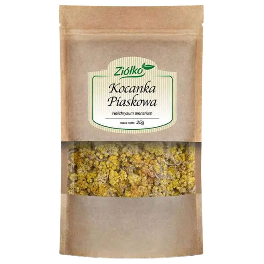 Helichrysum sandwort is a 100% natural dried inflorescence of a plant valued in herbal medicine. It supports the proper functioning of the liver and gallbladder, and has a positive effect on the kidneys and the genitourinary system. It is characterized by golden yellow flowers and a delicate spicy aroma. Packaged in a convenient resealable bag that preserves the freshness and aroma of the herbs.